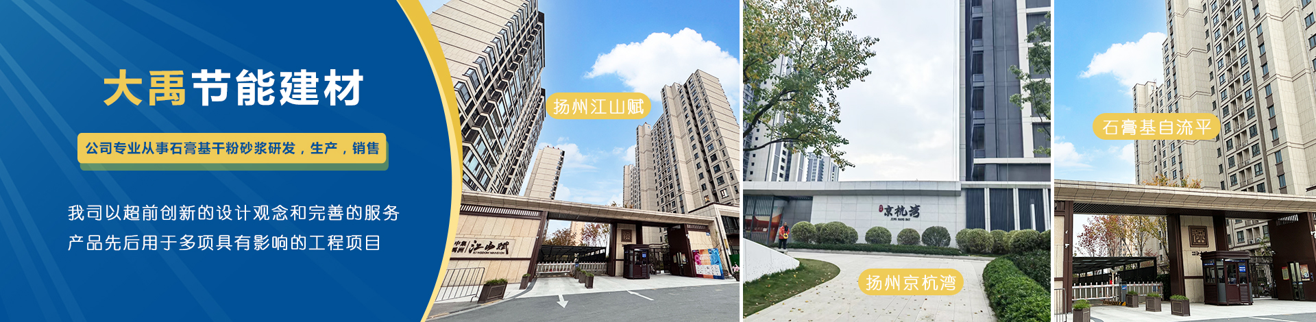揚州市大禹節(jié)能建材科技有限公司成立于2005年9月,位于聯(lián)合國宜居城市---江蘇省揚州市,地處江都經(jīng)濟開發(fā)區(qū),與揚、鎮(zhèn)、泰三市接壤,交通十分便捷。公司是專業(yè)從事石膏基干粉砂漿研發(fā),生產,銷售一體化的綜合性科技型企業(yè),為國家標準GB/T2862-2012《抹灰石膏》的參編單位。 公司擁有國內一流的特種砂漿生產線,并配有各種先進的檢測儀器,年生產能力可達10萬噸。各崗位管理及技術人員齊備,對產品···